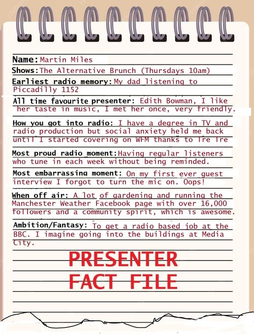 Martin presents The Alternative Brunch every Thursday morning from 10-12noon. Plus he is a regular stand in on our flagship shows and presents the occasional special, such as his Epic 80s Rewind.